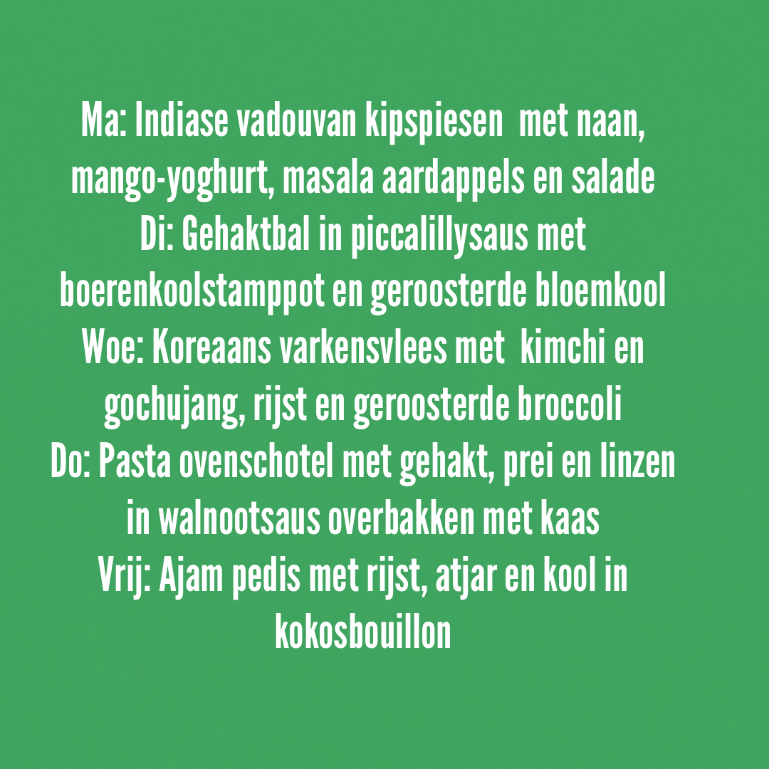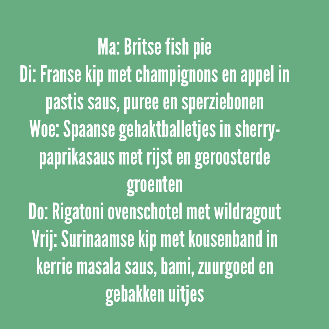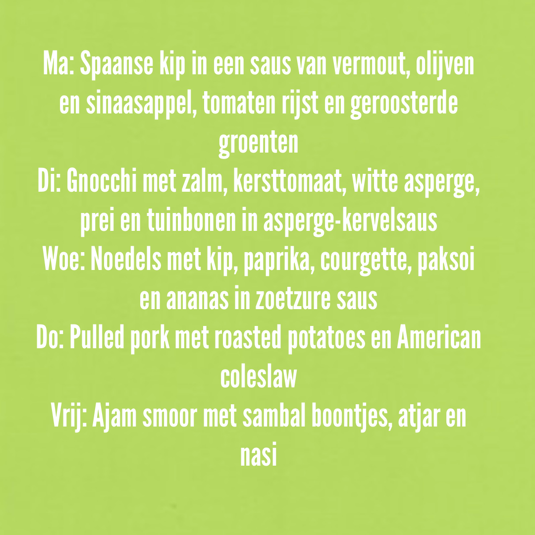 • Maandag t/m vrijdag een dagelijks variërende afhaalmaaltijd
